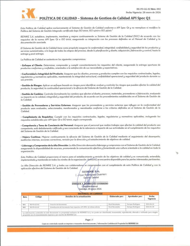 Nos preocupamos del aseguramiento de la calidad de nuestros productos, de la seguridad y bienestar de nuestros colaboradores, así como también de nuestro entorno y medio ambiente que nos rodea. Por estas razones en REINIKE estamos certificados en la Triple Norma ISO