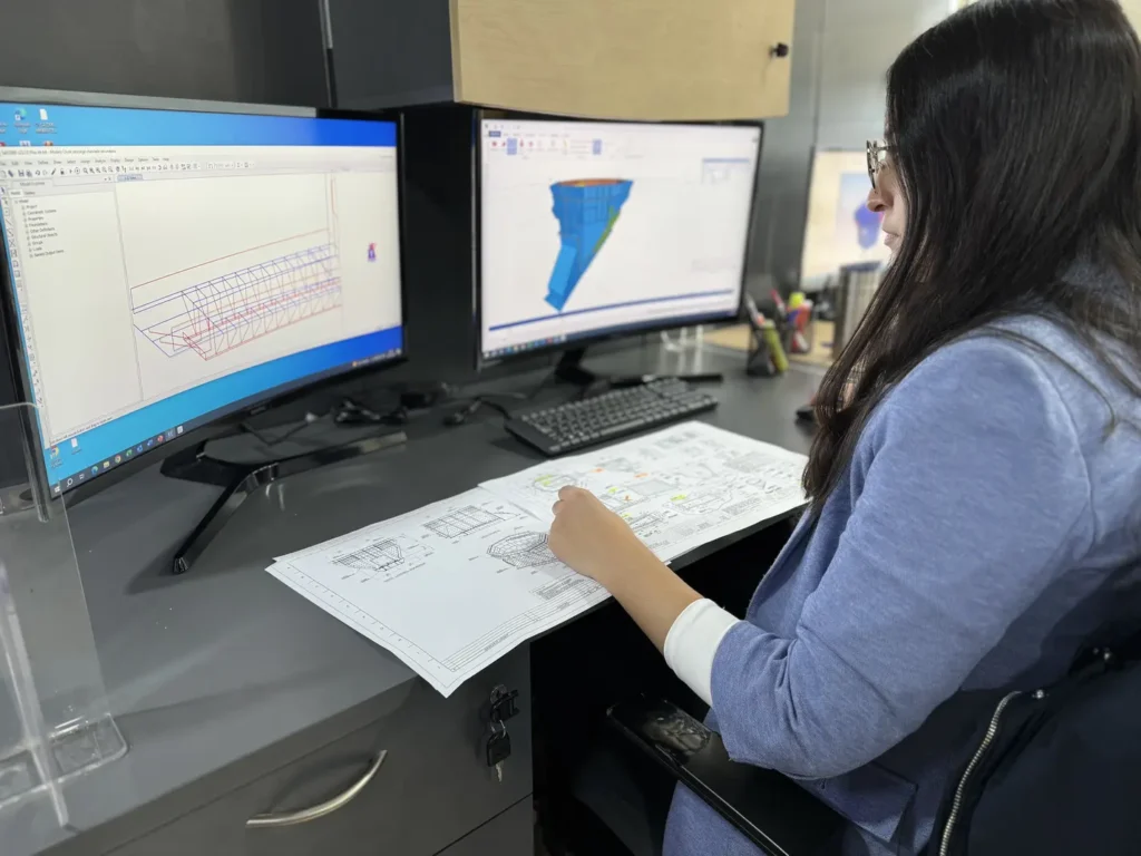 En REINIKE S.A. contamos con un área de ingeniería propia donde el detallamiento de proyectos se desarrolla mediante modelación 3D, utilizando softwares especializados como Tekla Structures y Pro Engineer. La oficina técnica genera modelos 3D e integraciones BIM que no se quedan en lo conceptual: se traducen en planos precisos de fabricación, montaje y detalle técnico, pensados para producción real y armado eficiente.